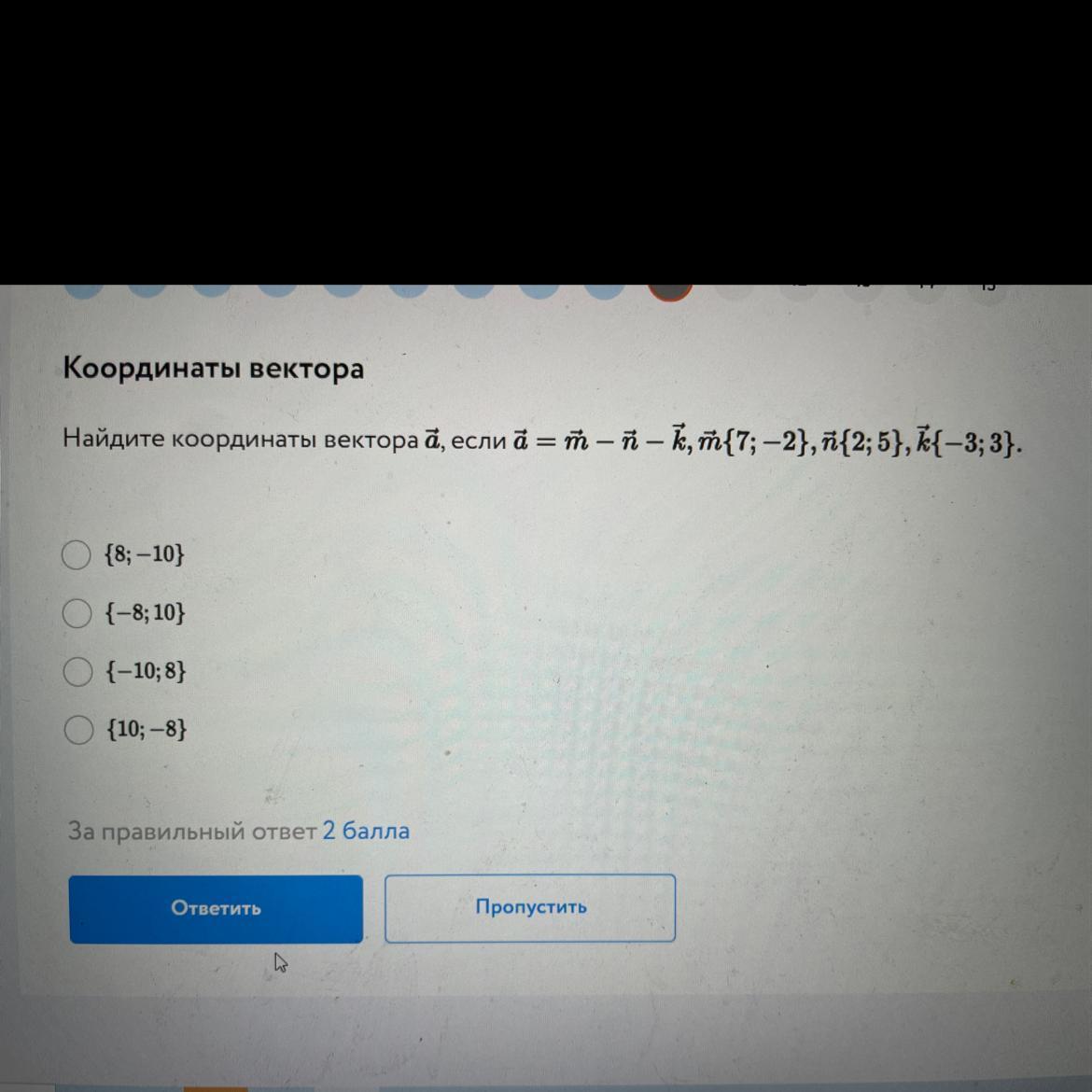 Ответ: вектор а { 8 ;- 10 } - перша відповідь .