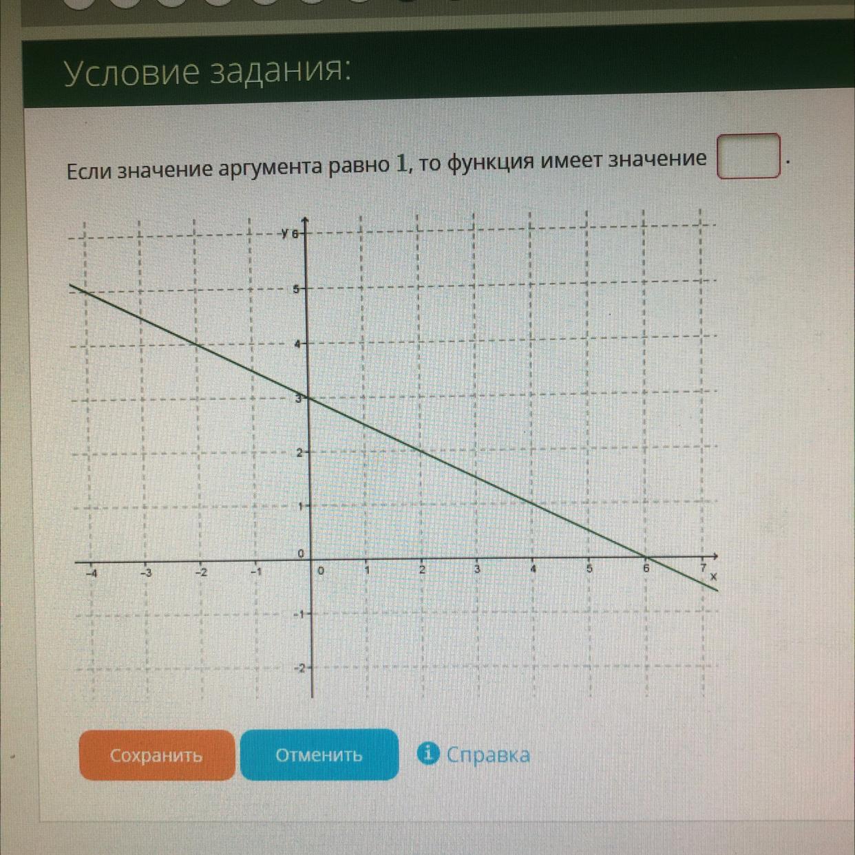 При аргументе (х), равном 1, функция (игрек) равна 2,5, исходя из графика