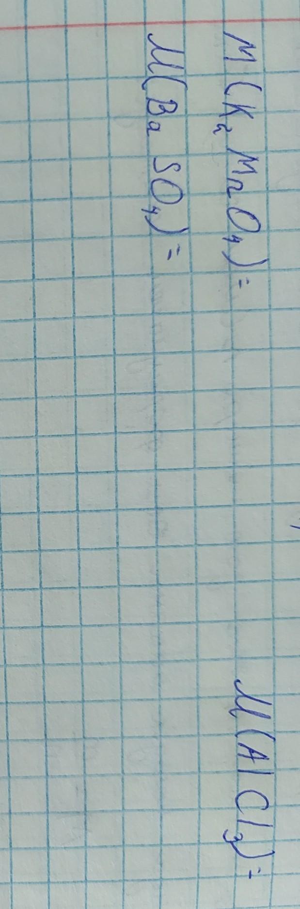 M(K2MnO4)=2Аr(K)+Ar(Mn)+4Аr(O)=2×39+55+4×16= 197г/моль
