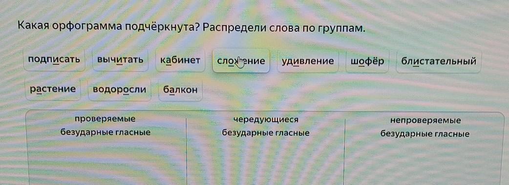 Проверяемые: подписать (подпи́шет), вычитать (начи́танный), удивление (ди́вный)