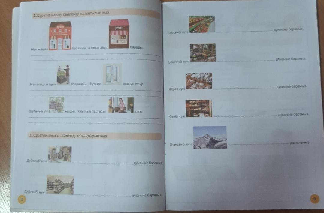 жиһаз,кітап,жеміс,азық-түлік,ет,нан,тауға барып.