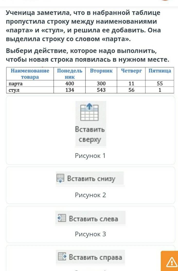 Вставить снизу ........
