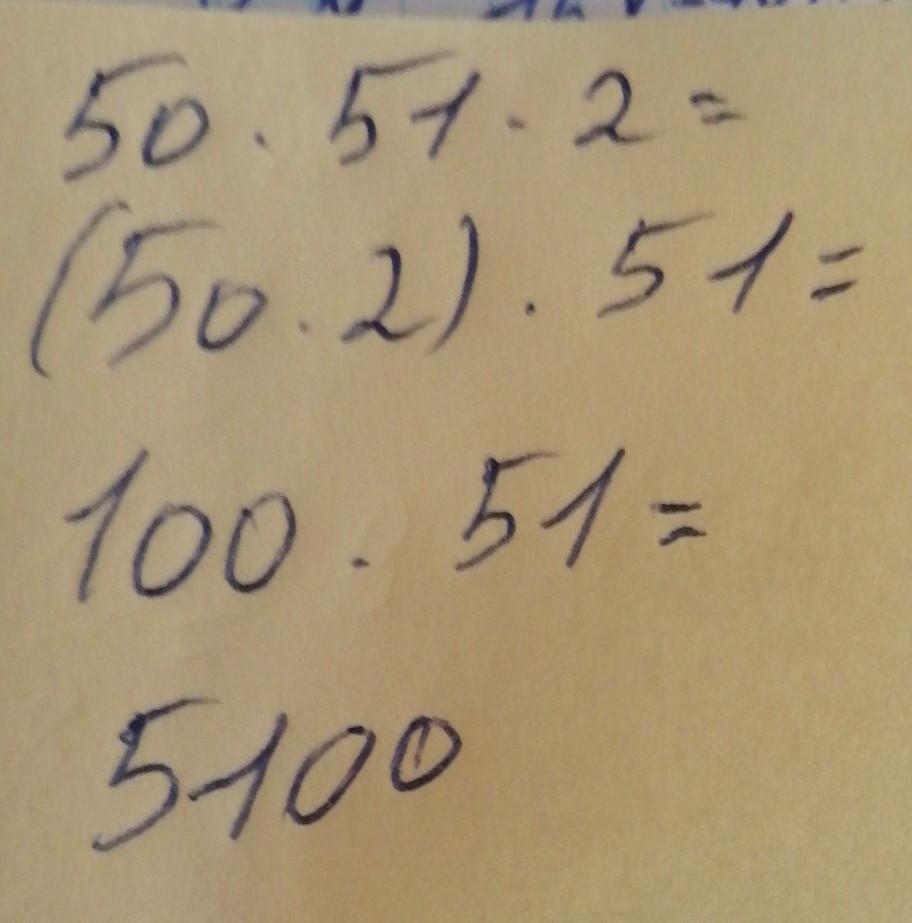 Чтобы упростить вычисления, сначала нужно умножить числа, произведение которых кратно 10. > 50×2=100