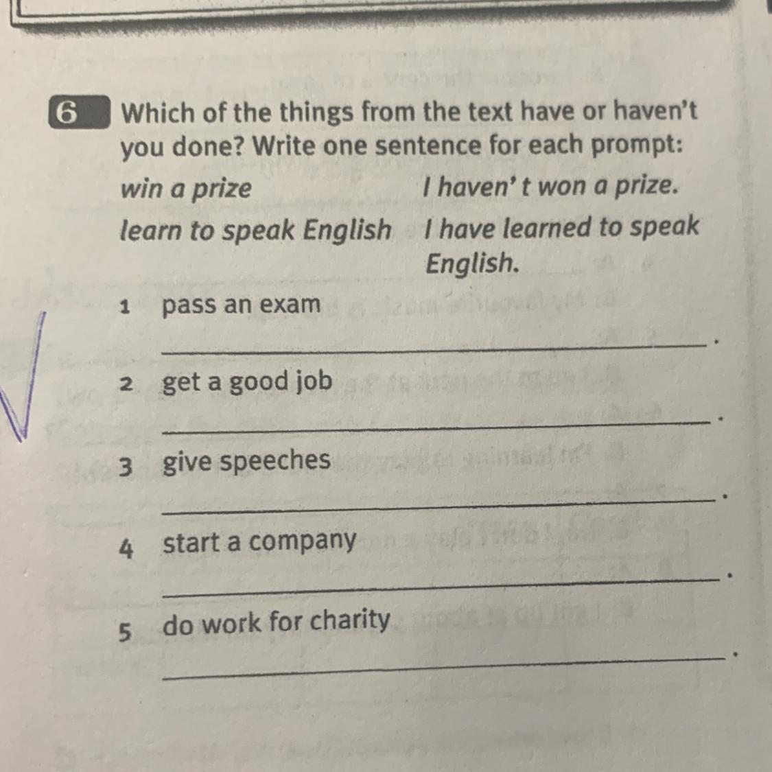 Which of the things from the text have or haven’t you done?Write one sentences for each prompt