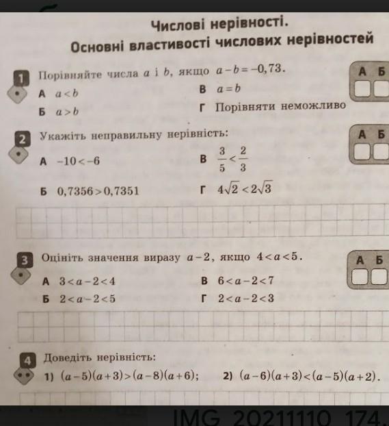 1. а<б, так как если из меньшего вычесть большее, то будет отрицательное число, ответ А