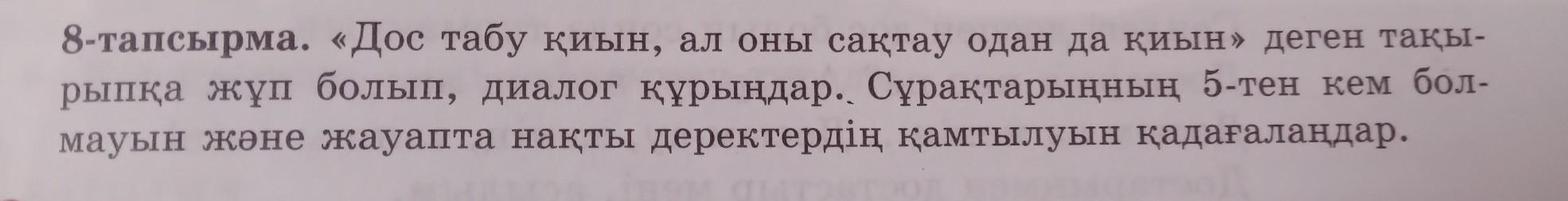 Өмірге келген әр пенде ес біліп,есейген соң мұң-шерін шағатып, қуанышына ортақтасатын сырлас іздеп тең табары рас. Достық – ұлы сезімнің бірі. Адамдар бір-біріне қалтқысыз сеніп, жығылғанда демеп, құласа көтеріп, өмірдің сан түрлі қиындығында жаныңнан табылып, қайғы мен мұңды тік тұрып бөлісетін, тек қиындықтар да ғана емес өмірдің жарқын сәттерінде де жәрдемдесетін өлшеусіз қамқорлық пен жауапкершіліктің, адами құндылықтардың басын біріктіретін қасиет. Дос табу оңай, ал оны сақтау одан да қиын. Достыққа кіршіксіз адалдық пен қарап, шынайы бағалау қажет.