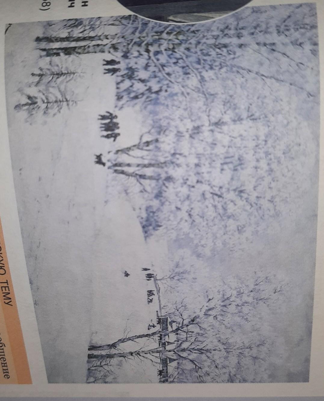 В этой картине я вижу прекрасную зимнюю пору. Эта картина почти полностью состоит из белых и чёрно-синих тонов. В этой картине я также вижу детей, которые решили пойти погулять в эту прекрасную пору. В этой картине также есть много детализированных деревьев и пару домов. Я удивлён этой красотой и простотой этой картины