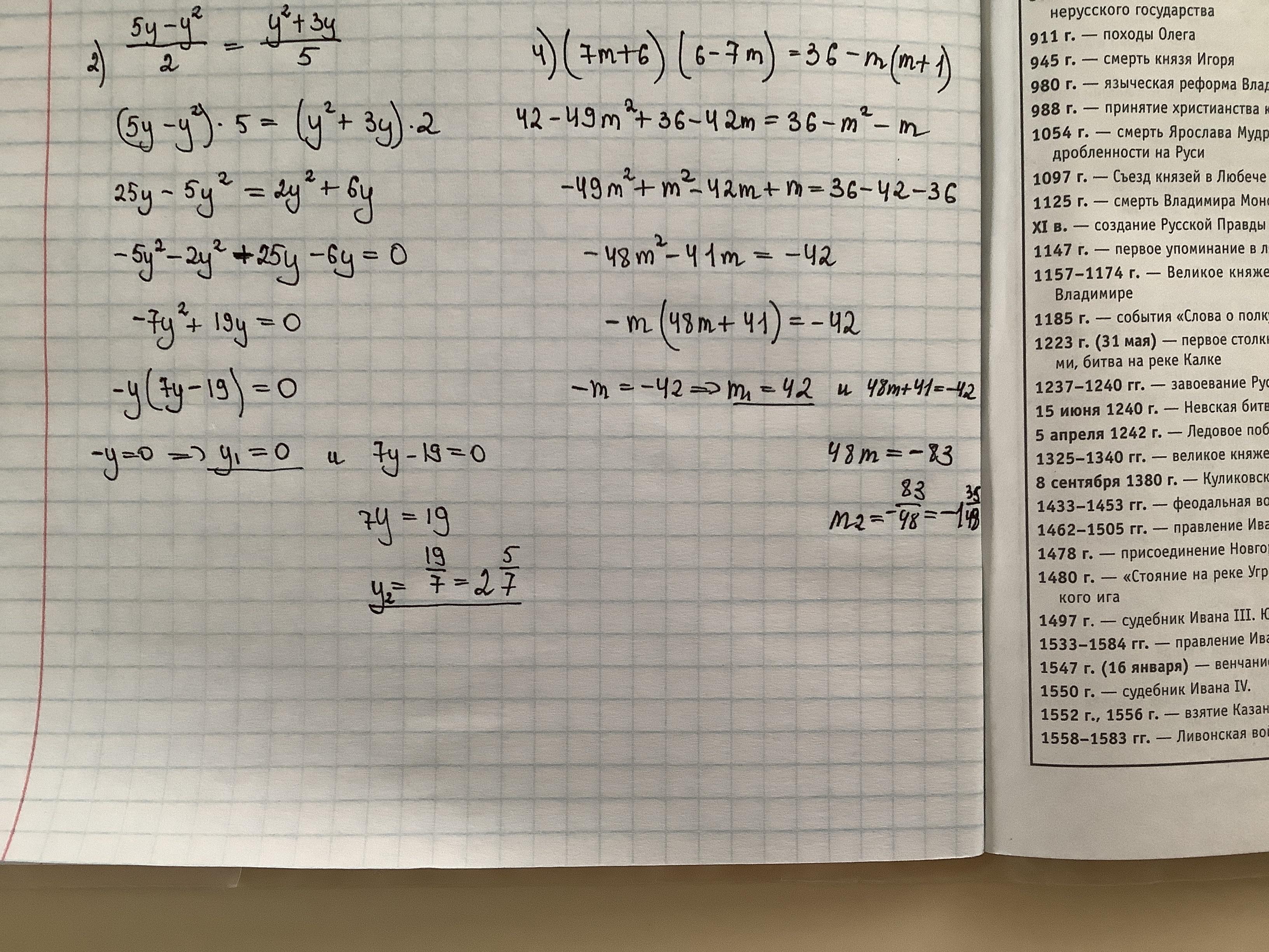 2) y1=0 и y2=2 5/7. 4) m1=42 и m2=-1 35/48