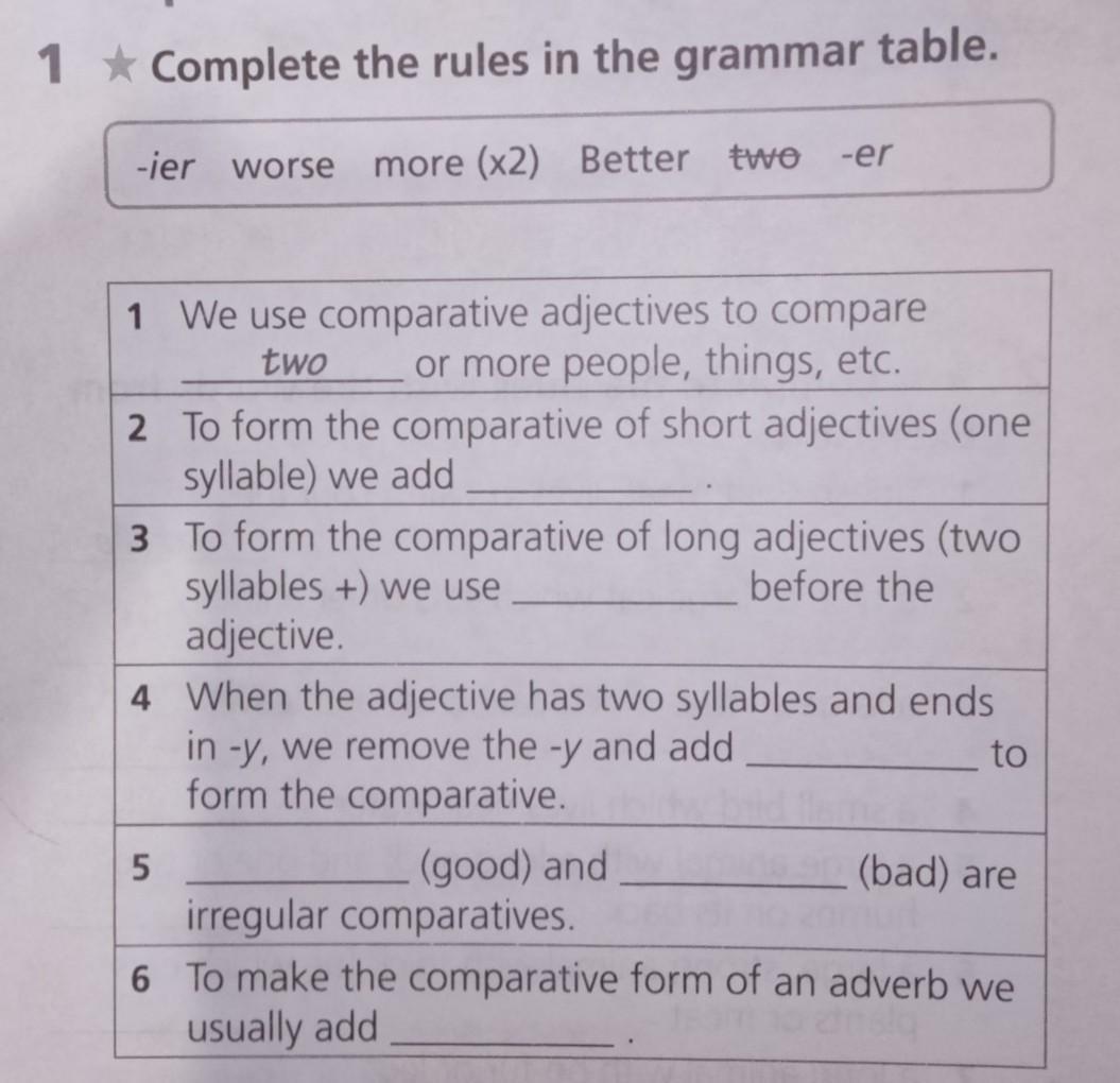 Complete the rules in the grammar table.