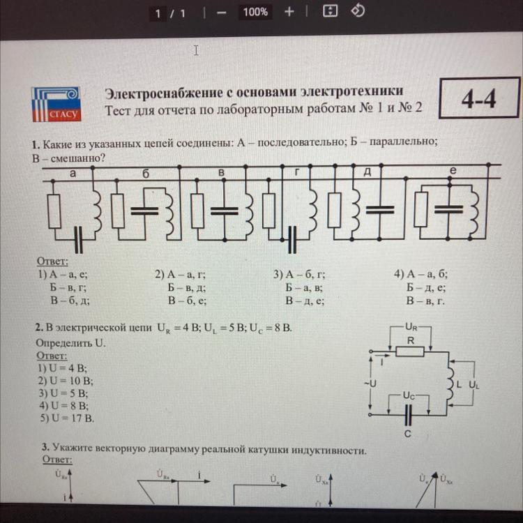 Во втором задании правильный ответ 5: при последовательном соединении общее напряжение равно сумме напряжений на каждом потребителе.
