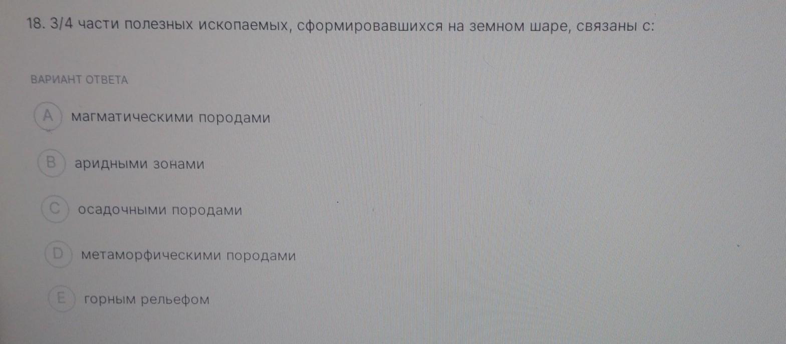 ВОПРОС 18/25 18. 3/4 части полезных ископаемых, сформировавшихся на земном шаре, связаны с: