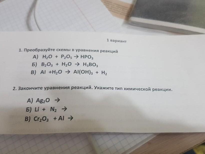 Ответ: 1) 3H2O + P2O5 = 2H3PO4