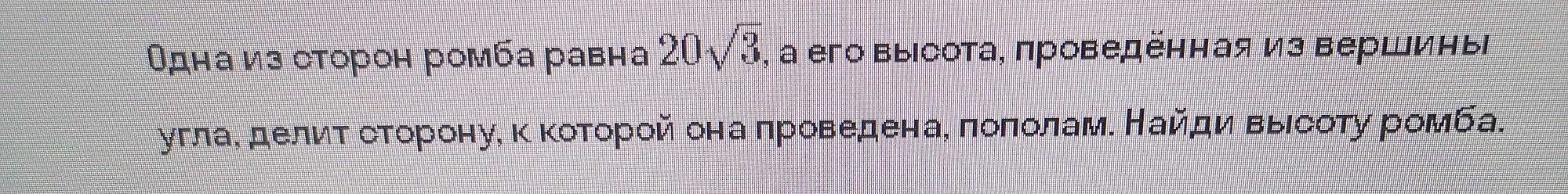 h=√ ((20√3)²-(10√3)²)=√900=30.