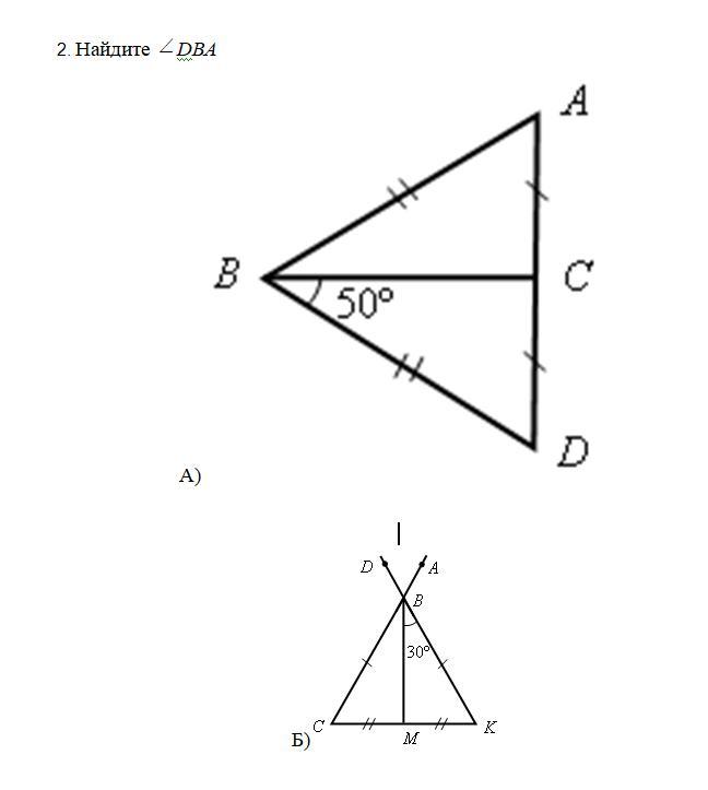 2) т.к треугольники ВАС и BDC равны, то и углы у них соотвественно равны, следовательно угол АВС = 50 градусов