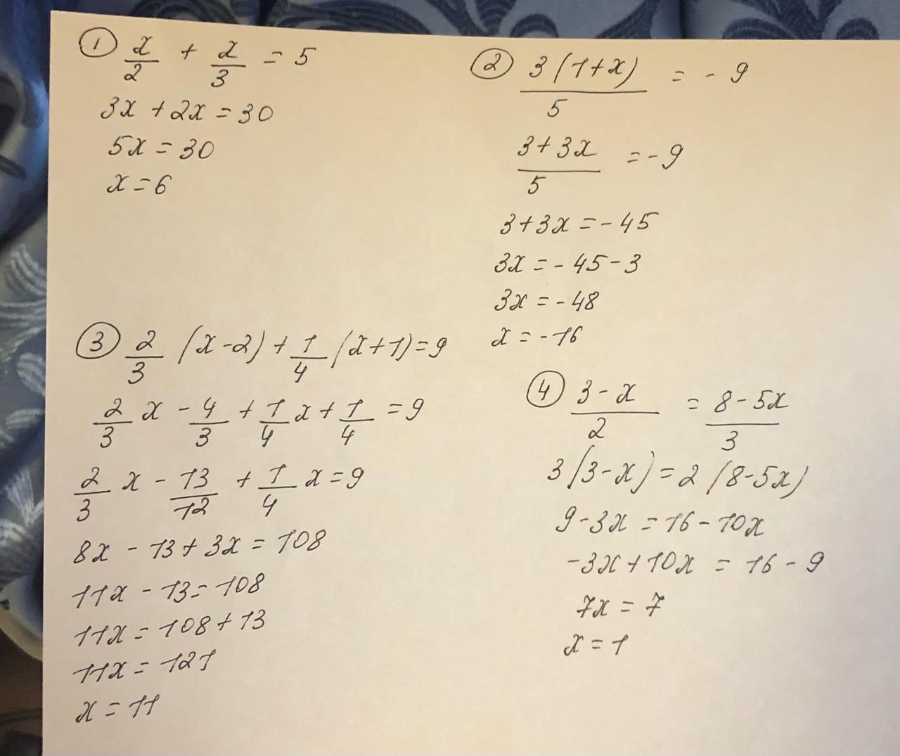 10 . ( 3 - x )/2 = ( 8 - 5x )/3 ;