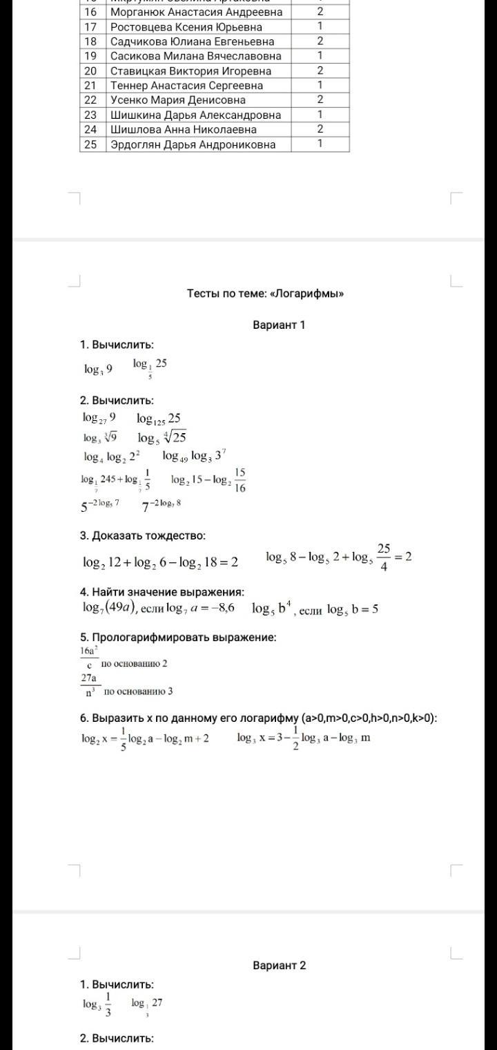 свойства логарифмов