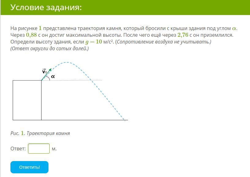 Пояснення:скорость камня в секунду 10 м значит от 2,76-0,88=18,8м висота здания.