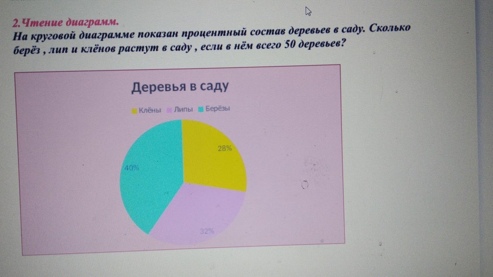 На круговой диаграмме показан процентный состав деревьев в саду. Сколько