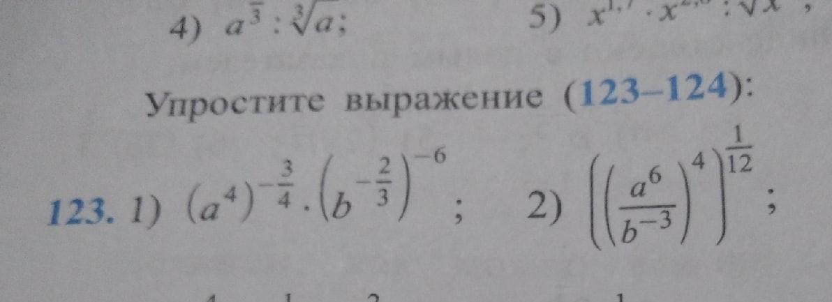 123 . 2 ) [ ( a⁶/b⁻³)⁴ ]^( 1/12 ) = [ ( a⁶b³)⁴]^( 1/12 ) = ( a²⁴b¹²)^( 1/12 ) =