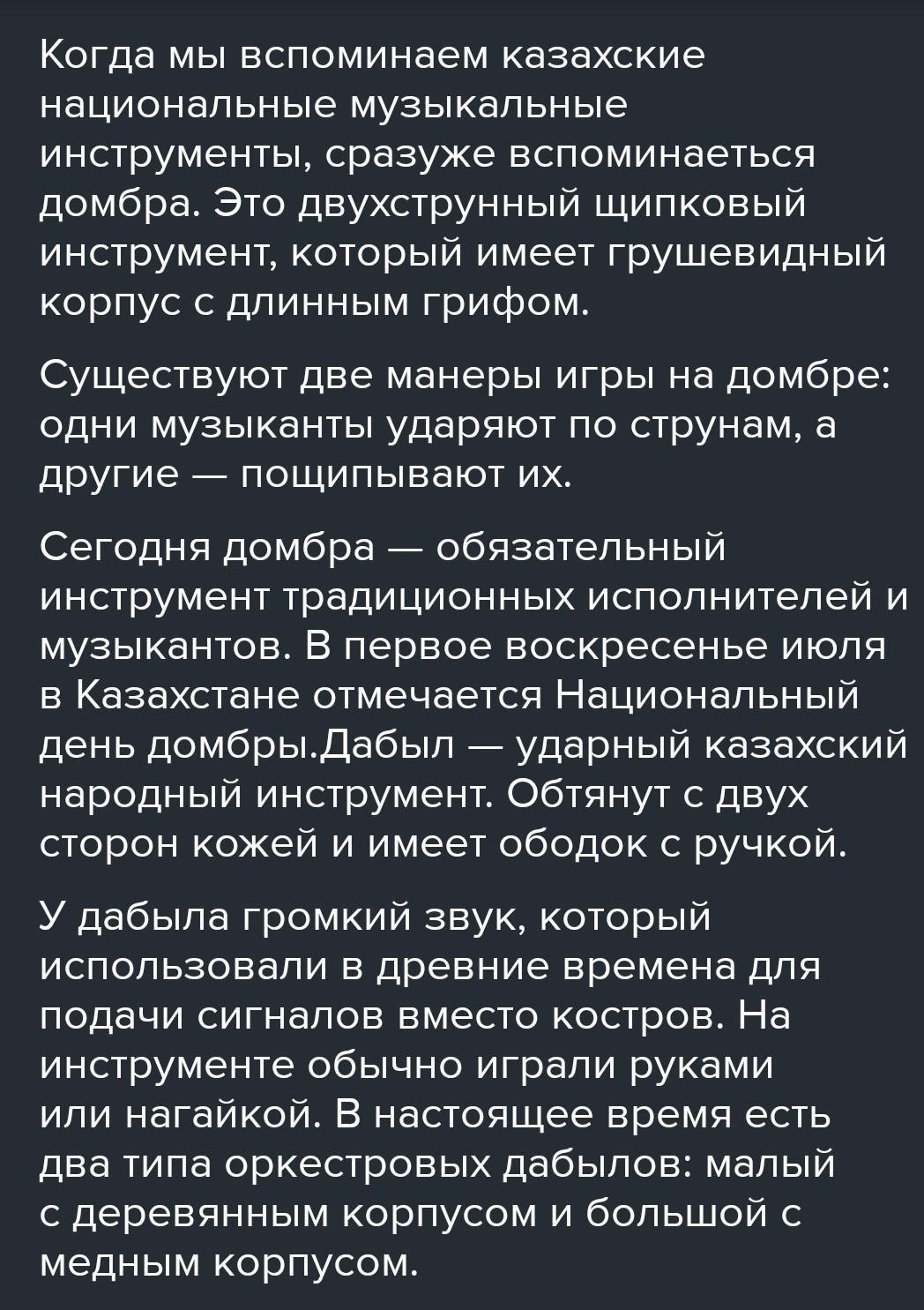 6. Напиши статью или заметку о казахских национальных инструментах. Используй для этого дополнительные источники информации (энциклопедии, детские журналы). Определи падеж имен существительных 2-го склонения.