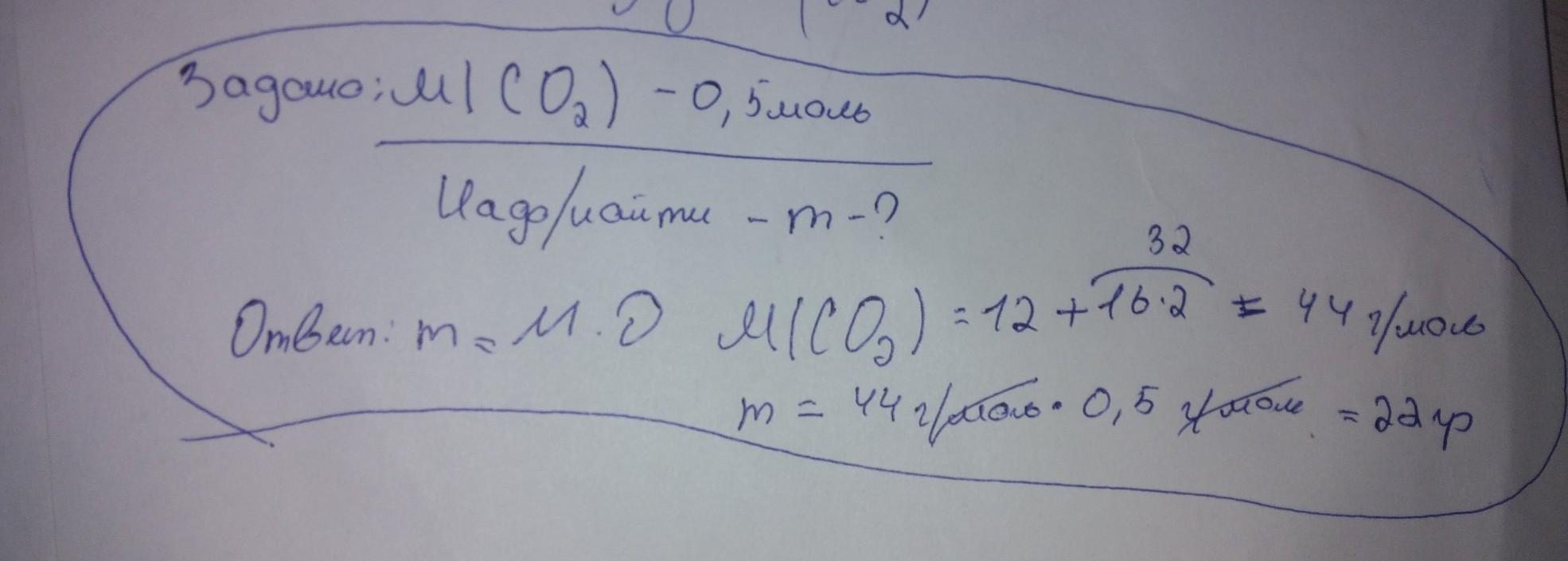 m (CO ₂) = n·M = 44 г/моль · 0,5 моль = 22 г