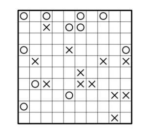 Заполнить свободные клетки крестиками или ноликами так,
