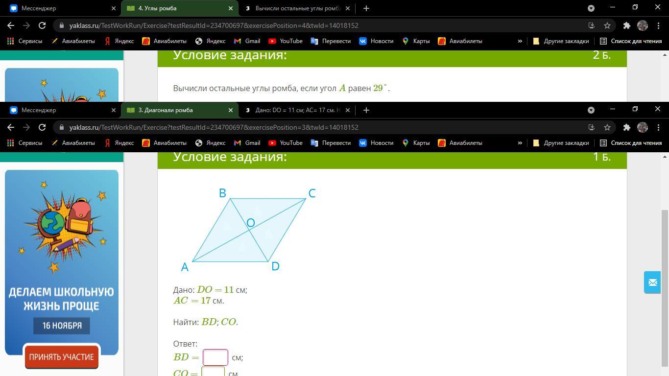 Диагонали параллелограма точкой пересечения делятся пополам.