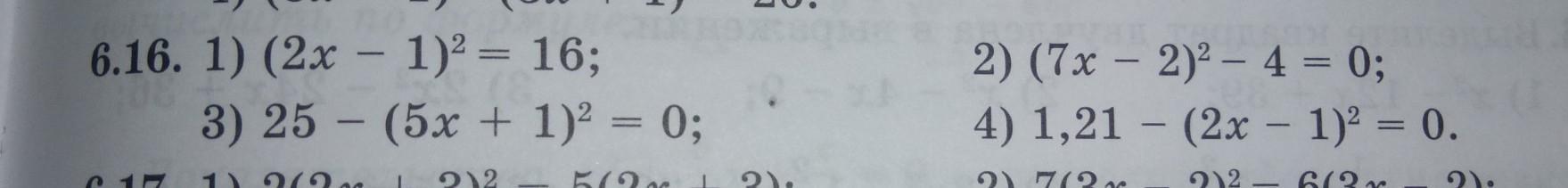 6.16. 1) (2x - 1) = 16; (5x + 1) = 0; 3 2) (7x - 2) - 4 - 0; 4) 1,21 - (2x - 1)" -0. 3) 25