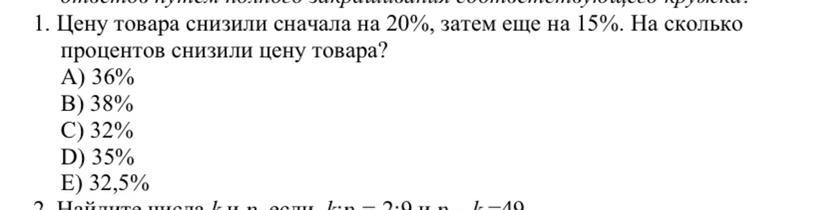 Чтобы решить эту задачу, нужно просто сложить 20% и 15%