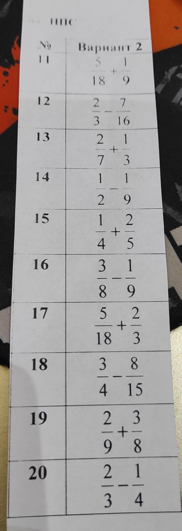 11)7/18, 12)11/48, 13)13/21, 14)7/18, 15)13/20, 16)19/72, 17)17/18, 18)13/60, 19)43/72, 20)5/12