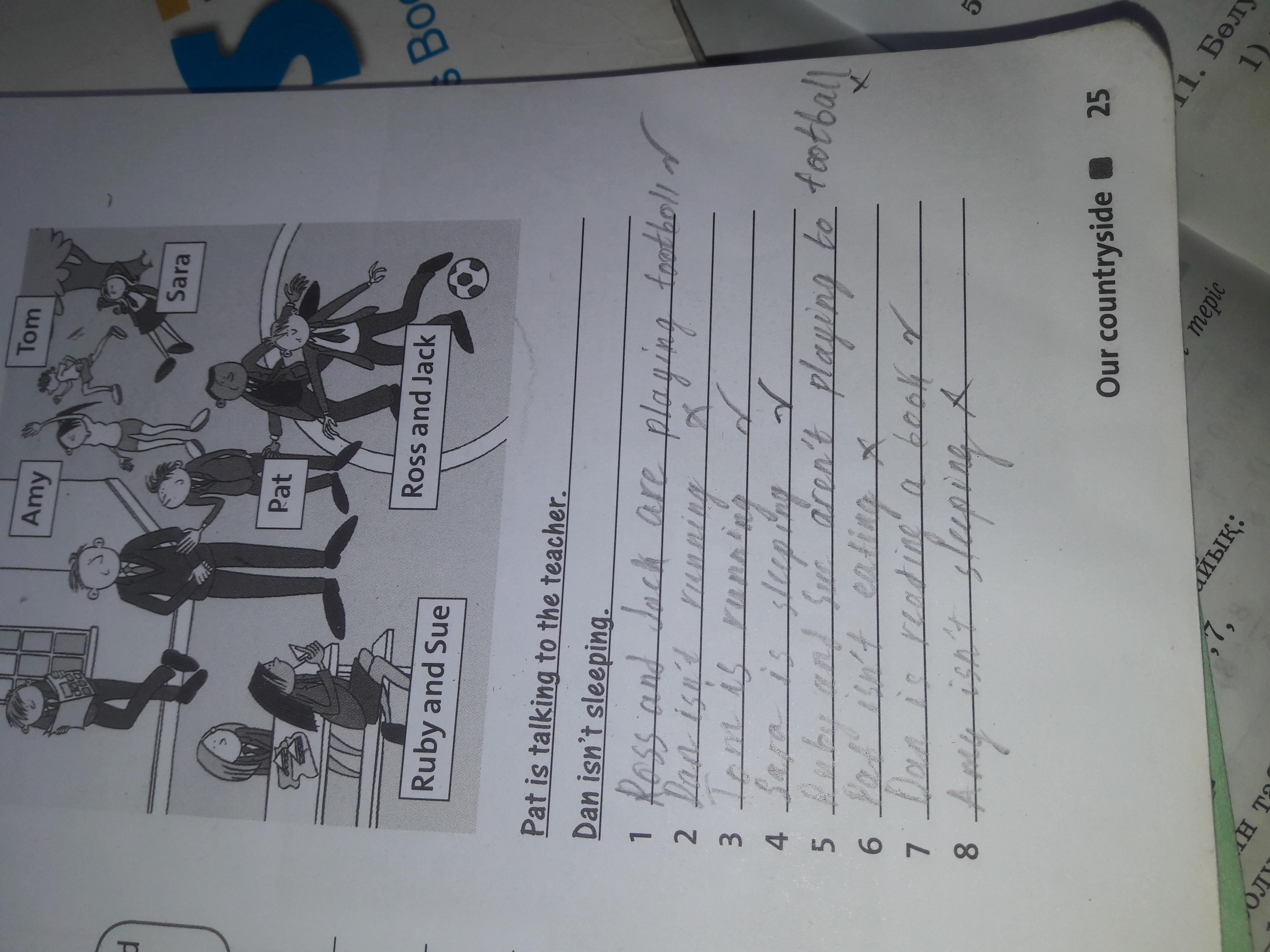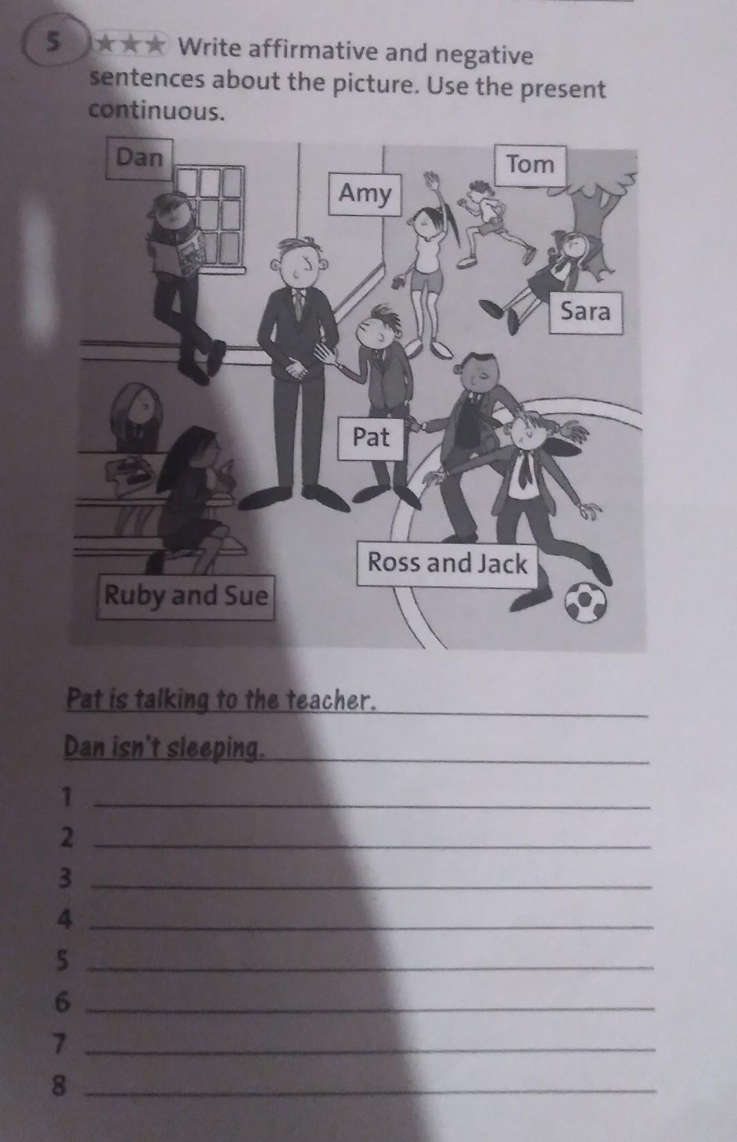 5.Write affirmative and negative sentences about the picture. Use the present continuous
