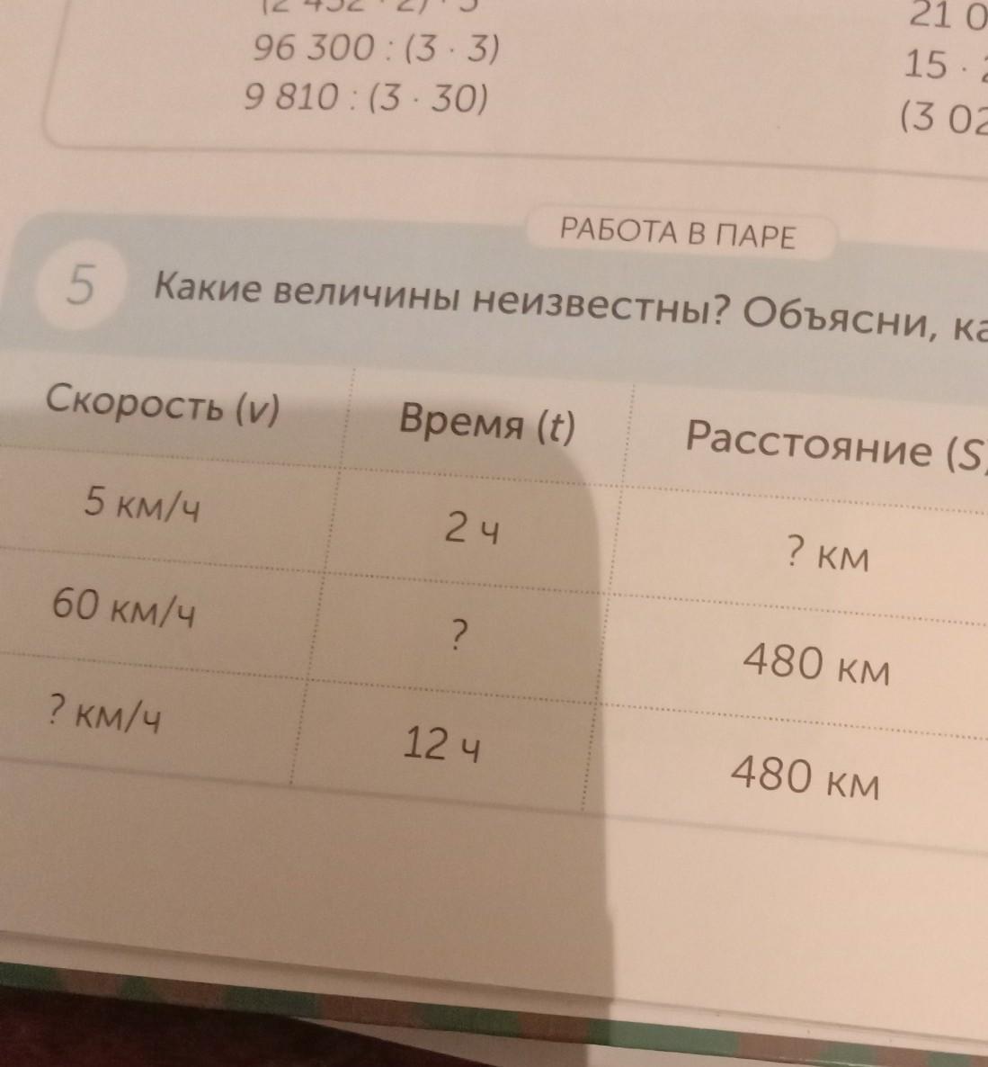 Какие величины неизвестны? Объясни, как их найти. Скорость (v) Время (t) Расстояния
