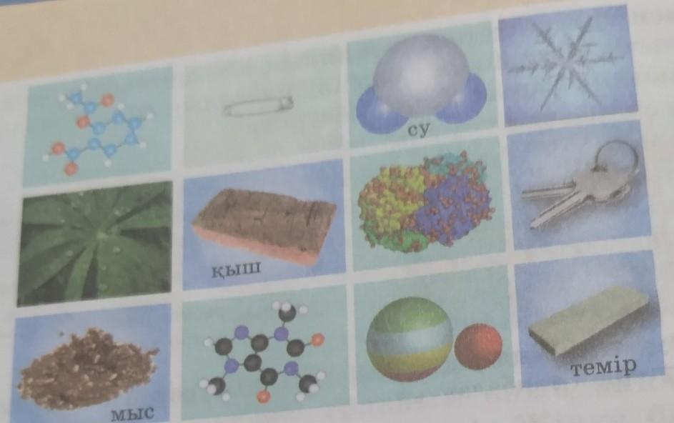 Суретте берілген заттарды 3 топқа бөліндер: дене; зат; молекула.