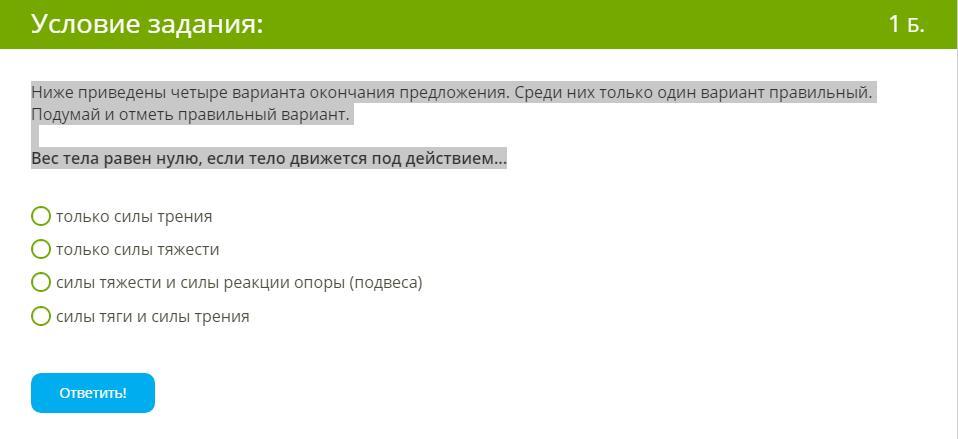 Вес тела равен нулю, если тело движется под действием...
