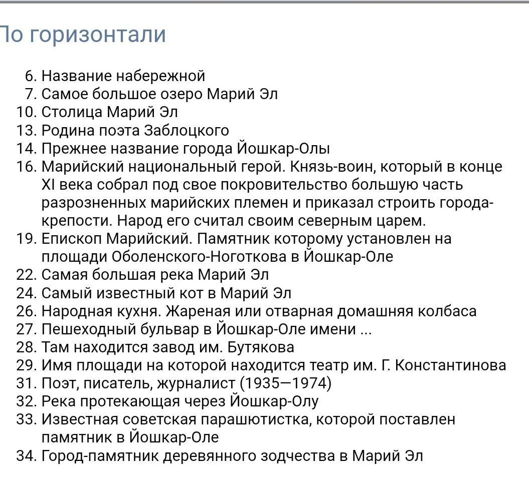 Кроссворд на тему " Достопримечательности города Йошкар-Олы " С вопросами.
