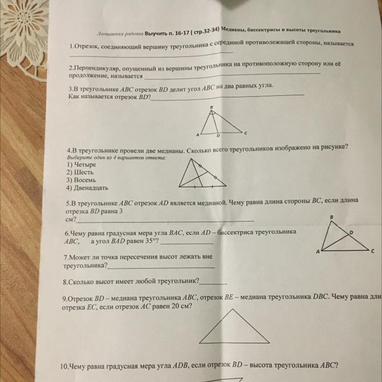 1-медиана 2-высотой;3биссектрисса 4-3)восемь 5-ВС=2*3=6см