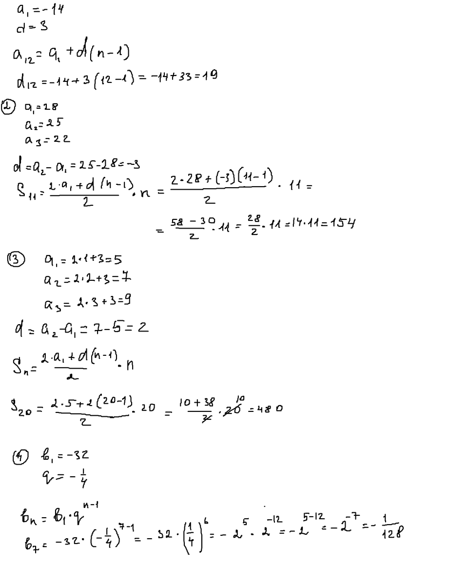 1) Найдите 12 член арифметической прогрессии(An), если А1=-14 и d=3