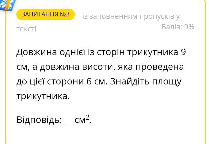 S=0.5ah = 0.5*9*6 = 27