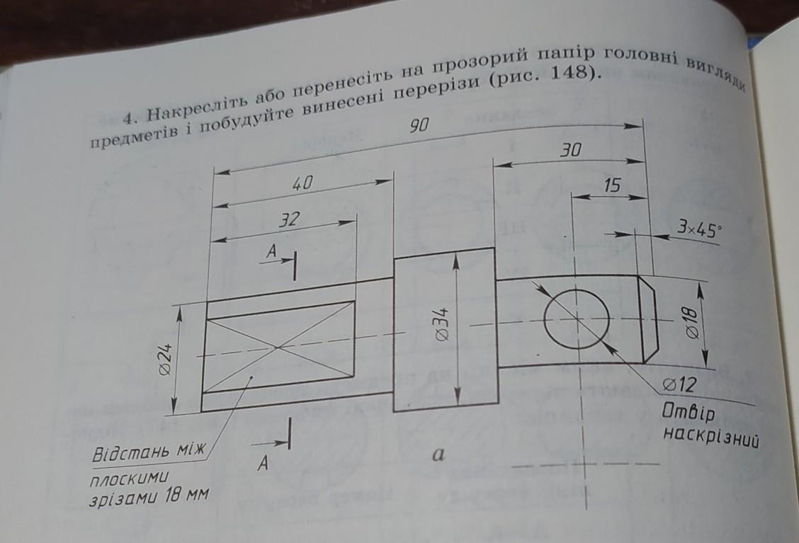 Накресліть або перенесіть на прозорий папір головні вигляди предметів і побудуйте винсені перерізи рис. 148 а)