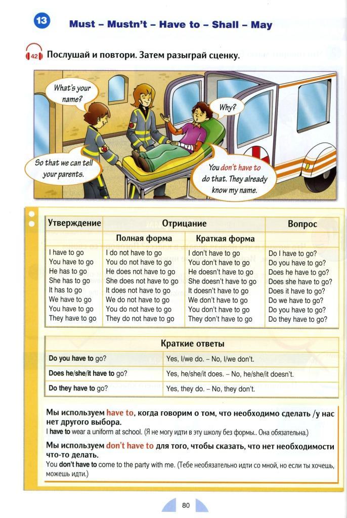 Тебе нужно выучить значение have to, don't have to. И ответы к этому