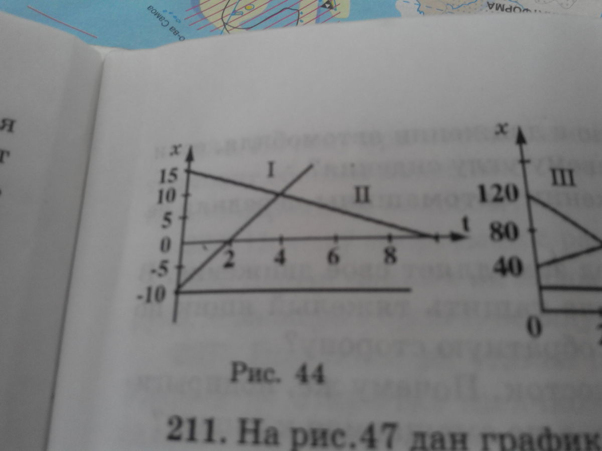 Помогите, пожалуйста с задачей! Напишите уравнения движения тел, графики которых даны на рис.44