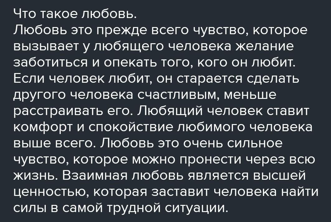 ДАЮ ОООООЧЕНЬ МНОГО БАЛЛОВ!!!!Как вы понимаете значение слова "Любовь"? Сформулируйте и прокомментируйте данное вами определение. Напишите сочинение-рассуждение на тему. Что такое любовь? аргументируя свой тезис, Приведите два примера аргумента подтверждающих ваши рассуждения, один пример-аргумент приведите из прочитанного текста, а второй из вашего жизненного опыта!