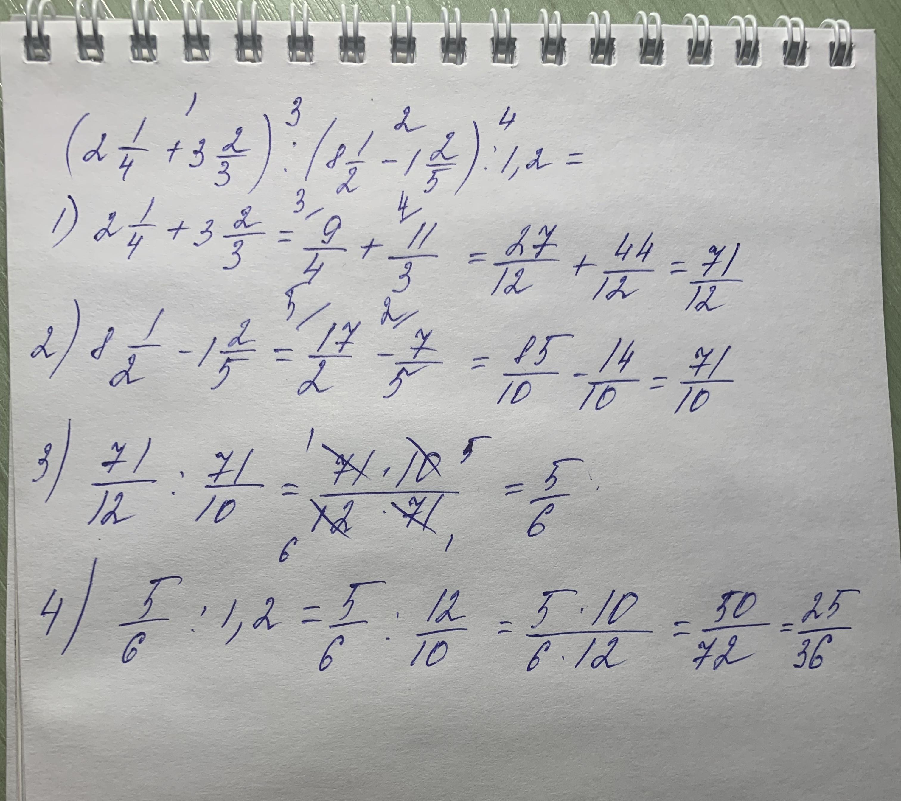 3) 5. 11/12 : 7. 1/10 = 71/12 : 71/10 = 71/12 * 10/71 = 10/12 = 5/6