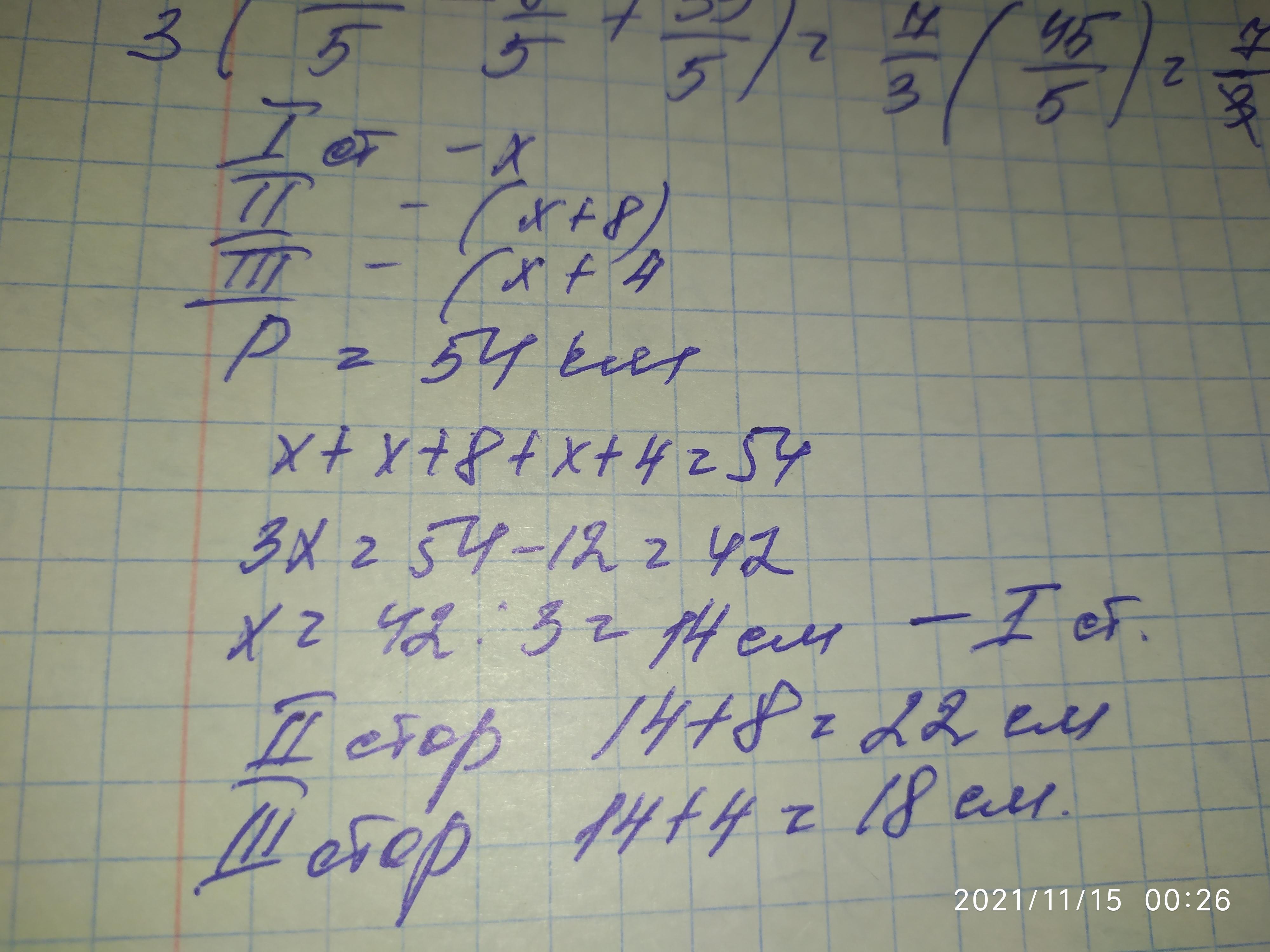 В треугольнике одна сторона меньше другой на 8см и меньше третьей на 4см.Найди длины сторон треугольника,если его периметр 54см.