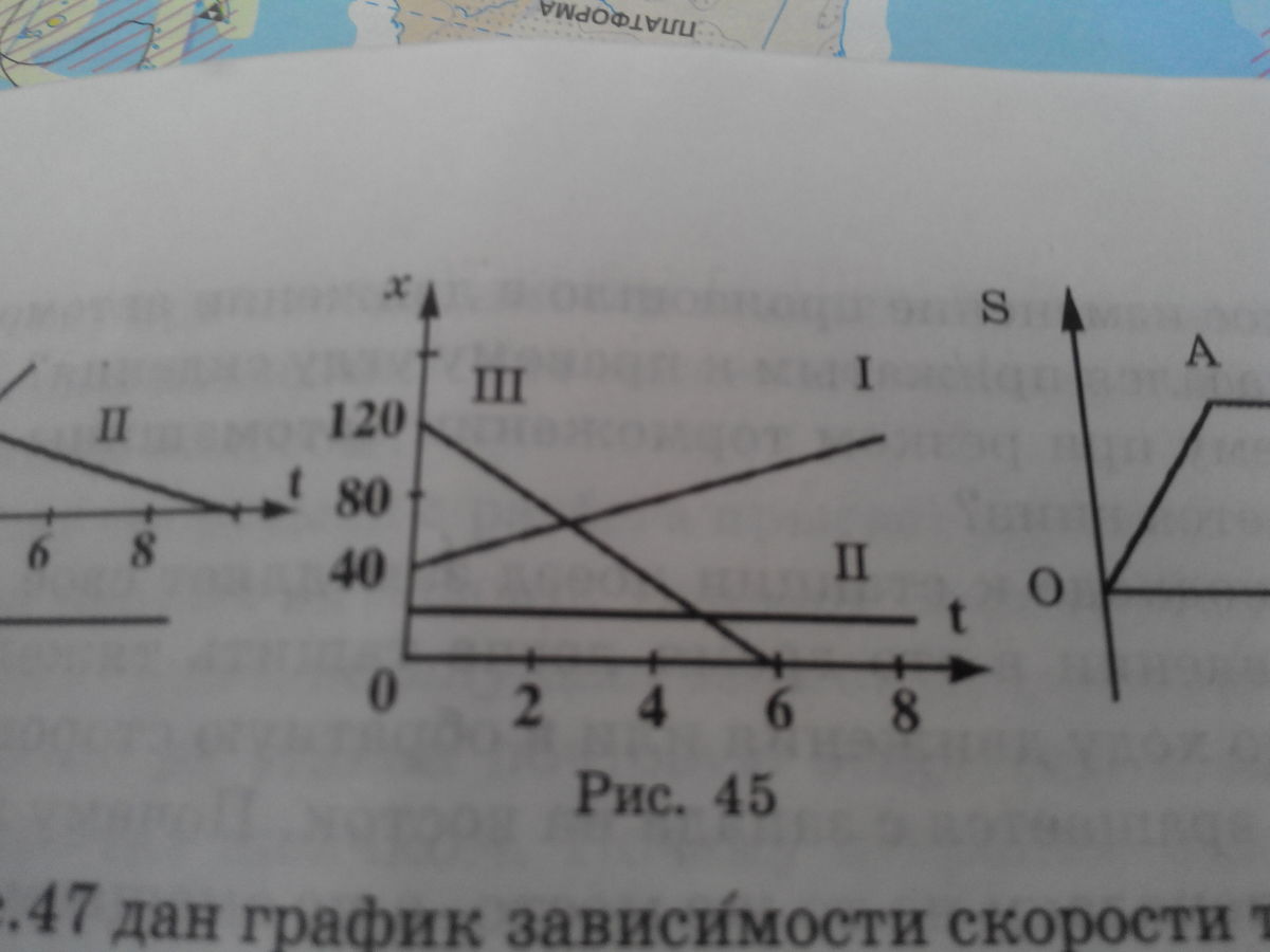 Помогите, пожалуйста, с задачей! Напишите уравнения движения тел, графики которых даны на рис.45
