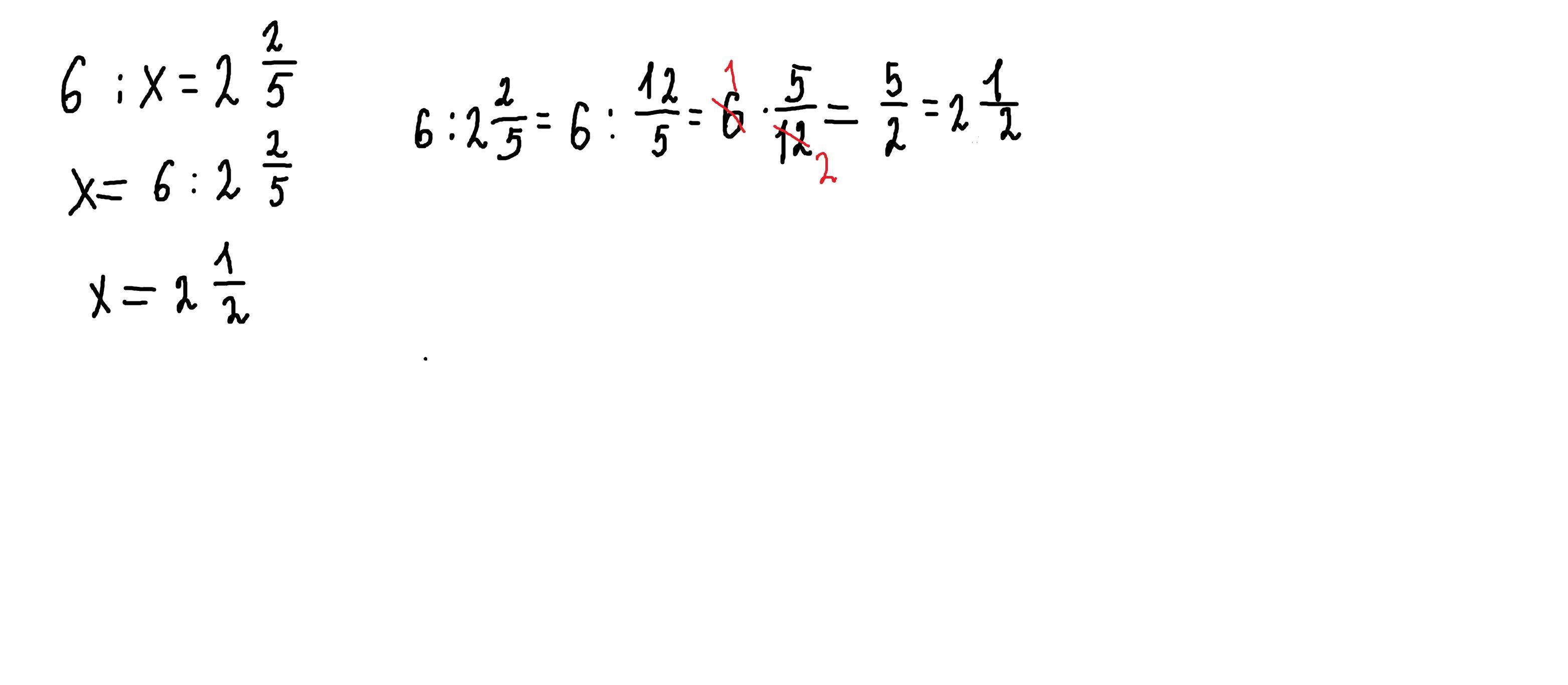 6 : x = 2 2/5
