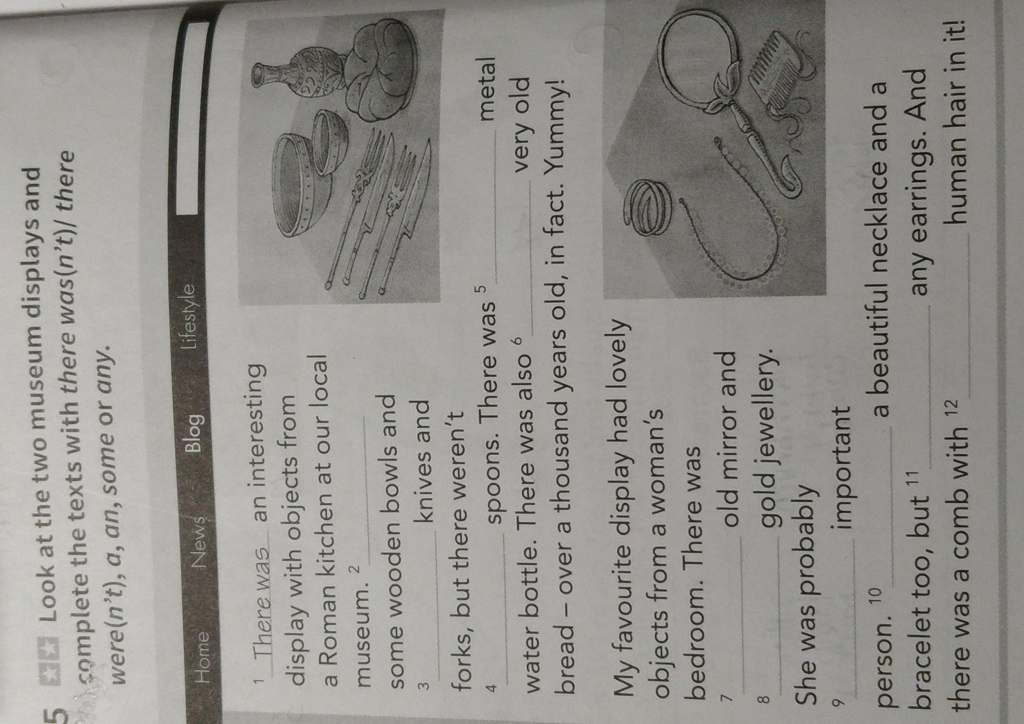 Look at the two museums displays and complete the text with there was (n't) /there were (n't),a,an, some or any.