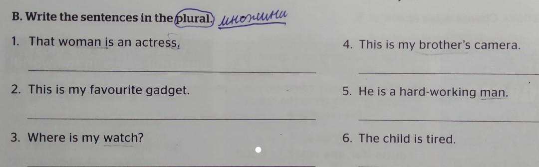 B. Write the sentences in the plural. 1. That woman is an actress,