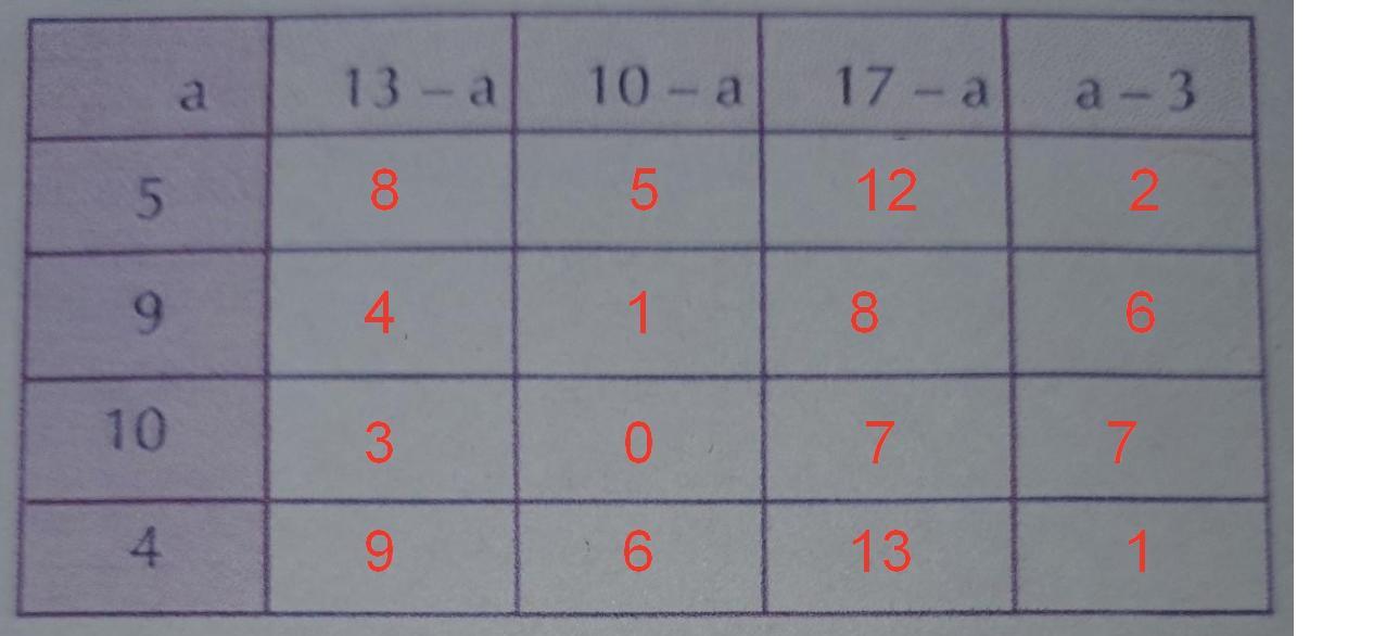 13-4=9 10-4=6 17-4=13 4-3=1