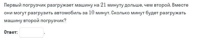Тогда второй за минуту разгружает 1/х часть груза, первый 1/(x+21) часть, а вместе за минуту (1/Х)+1/(Х+21) или, что то же самое (2X+21)/(X*(X+21)) часть.